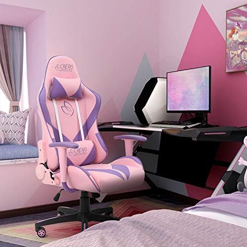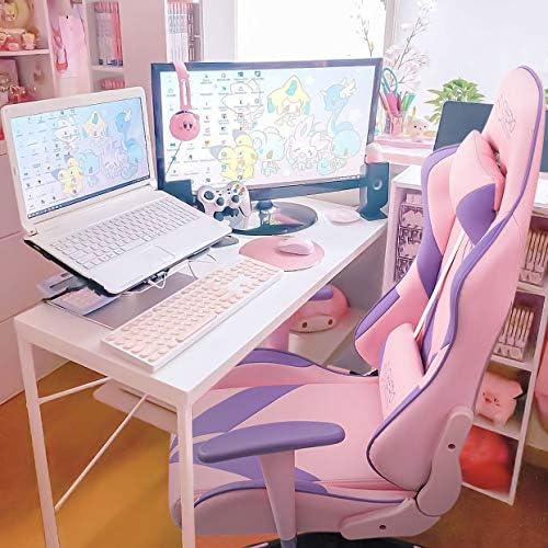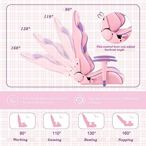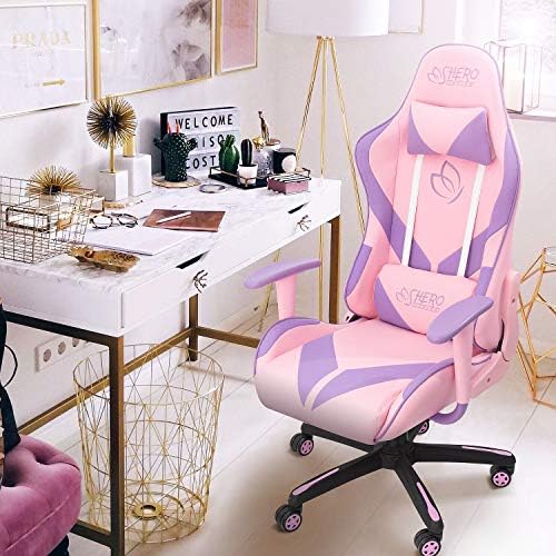 Homall Gaming Chair Girl Racing Office Chair High Back Computer Desk Chair Leather Executive Adjustable Swivel Chair with Headrest and Lumbar Support (Pink)