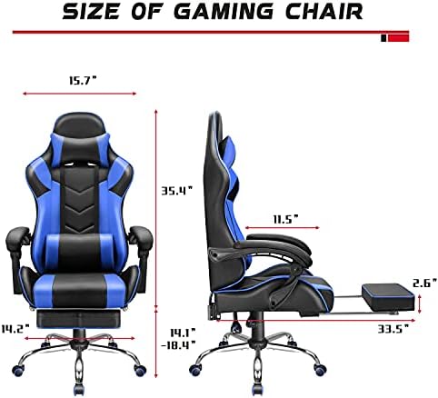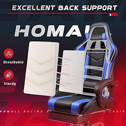 Homall Gaming Chair Laptop Chair Racing Fashion Gaming Chair with Footrest Ergonomic Adjustable Swivel Workplace Chair Excessive Again Laptop Chair with Headrest and Lumbar Help (Gentle Blue)