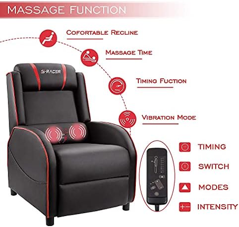 Homall Gaming Recliner Chair Racing Style Single Living Room Sofa Recliner PU Leather Recliner Seat Home Theater Seating (Red, Massage)