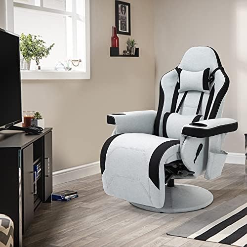 HOMHUM Workplace Chair Recliner Therapeutic massage Gaming Reclining Chair for Adults, Cloth Racing Swivel Chair w/Adjustable Backrest and Footrest, Snug Ergonomic Excessive Again Pc Chair, Gray