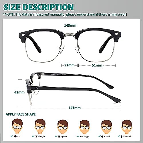 i-Gof Photochromic Blue Mild Blocking Glasses Retro Semi Rimless UV400 Filter Laptop Eyewear for Males Ladies Classic Half Body Anti Eyestrain Laptop Gaming Glasses