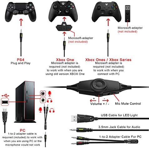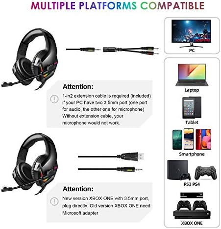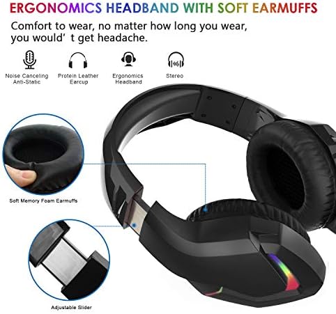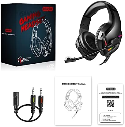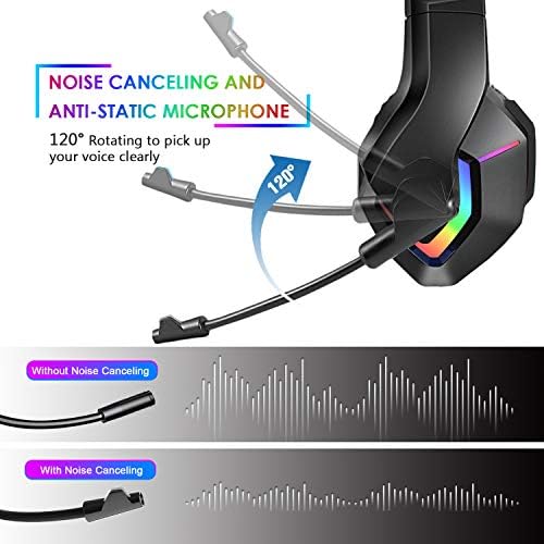 INHANDA Gaming Headset,Xbox One Headset with Mic, PS4 Headset with Mic Noise Canceling & Deep Bass Sound,RGB LED Gentle,Suitable with PC,PS4,PS5,Swap,Xbox One – Black