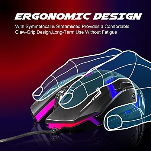 Ergonomic Gamer Mouse:Delivering an especially snug and exact expertise for Pc Video games.The ergonomic form of the INHANDA PC Gaming Mouse is constructed for consolation,suits naturally in your hand,the buttons are tuned to cut back click on fatigue.