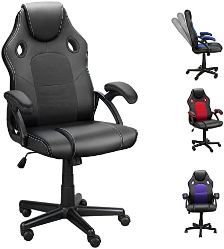 iooHug Laptop Chair, Ergonomic Workplace Chair Gaming Chair Low cost Headrest with Lumbar Help, Dwelling Workplace Desk Chair with PU Leather-based Mesh, Video Sport Chairs for Teenagers Black