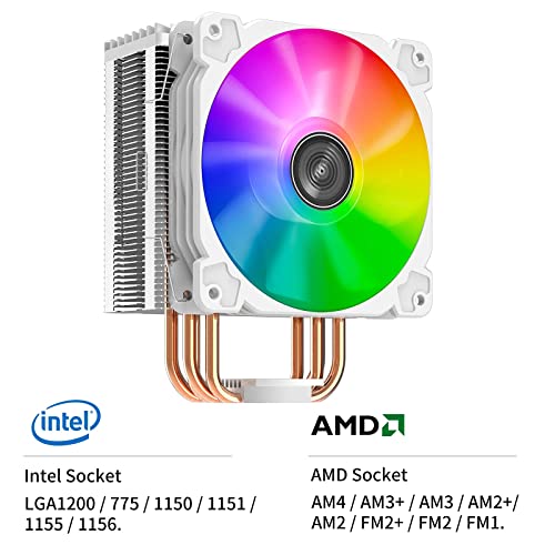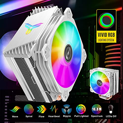 JONSBO CR1000 RGB CPU Air Cooler, CPU Cooling Fan 4 Warmth Pipes, Detachable 120mm PWM Fan, AMD Ryzen AM3 AM4, Intel LGA 1200 115X, Air Cooling Fan for CPU, White