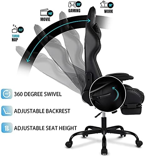 【Improve Configuration】: Our gaming chair’s fuel raise is Class-3 verified by SGS, extra secure Video Recreation Chair, with a most load capability of 301 kilos; Use the rubber pu wheel to guard the ground with out scratches.
