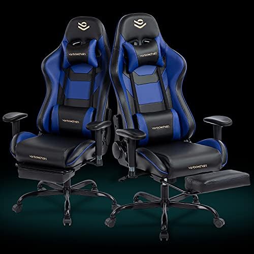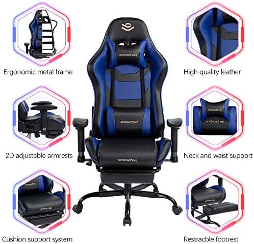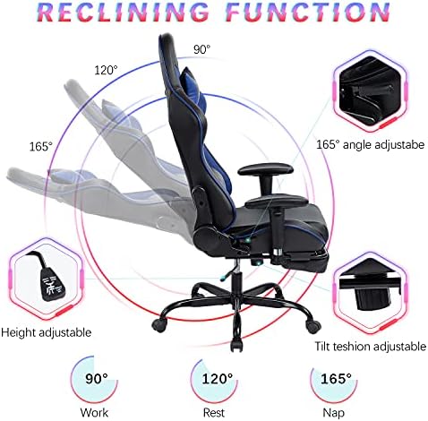 Kasorix Gaming Chair with Footrest Ergonomic PU Leather-based Laptop Chair for Gaming Reclining Excessive Again Workplace Chair with Therapeutic massage Lumbar Help (Blue)