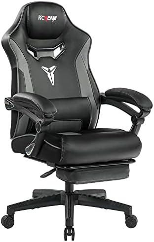 KCREAM Gaming Chair Pc Desk Chair with Footrest Racing Fashion Ergonomic Sport Chair with Construct-in Lumbar Assist and Adjustable Recliner Excessive Again Leather-based E-Sports activities Chair for Grownup (8521-gray)