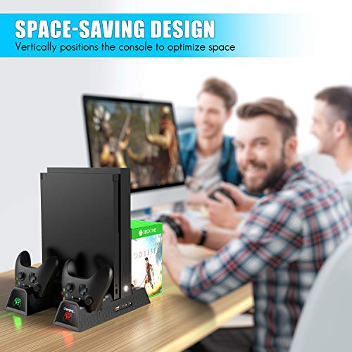 KINGTOP Vertical Cooling Stand Suitable with Xbox One/S/X, Twin Controller Charging Docking Station for Xbox One Cooler Cooling Fan with 2PACK 600mAh Batteries, Video games Storage