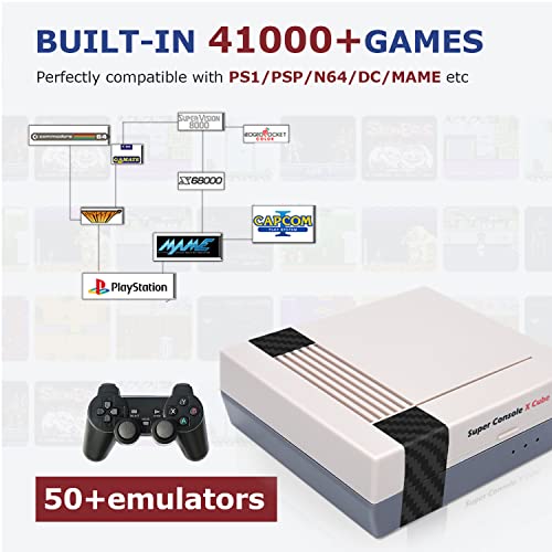 Kinhank Retro Sport Console,Tremendous Console X Dice Professional with 41,000+ Video Video games, Basic Mini Gaming Methods for TV,Plug and Play,Suitable with PS1/PSP/N64/DC/MAME and so on,Assist 4K HD/AV Output