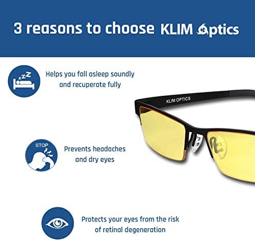 KLIM Optics Blue Mild Blocking Glasses + Scale back Eye Pressure and Fatigue + Gaming Glasses for PC Cellular TV + Blocks 92% Blue Mild + Pc Glasses with UV Safety + New 2021 Model