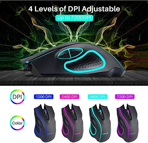 ❆【Excessive Accuracy Wired Mouse】 The default 4 DPI ranges for gaming mouse: 1200/2400/4800/7200(minimal 200 by means of programming). 4 polling charges might be adjusted: 125Hz/250Hz/500Hz/1000Hz, excessive polling fee can convey higher expertise and precision while you transfer the mouse shortly. The mouse designed particularly for gaming.