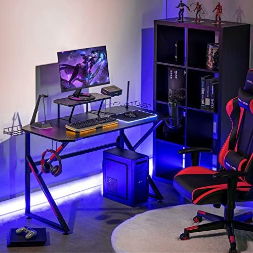 【Further Monitor Stand】We specifically designed the monitor stand for this desk.The ergonomic monitor stand can preserve you away from bending your neck whereas gaming or working.It won’t trigger cervical backbone and shoulder soreness even when utilizing this desk for a very long time.