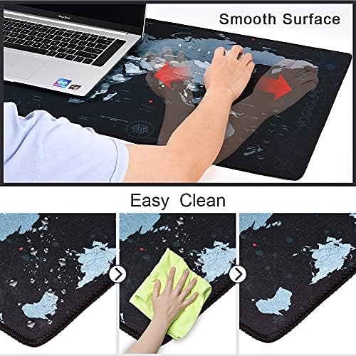 Massive Gaming Mouse Pad Keyboard Pad Prolonged XXXL Measurement Huge Mousepad with Stitched Edge Waterproof Nonslip Base Desk Mat for House Workplace Laptop computer Pc Gaming, 39.4″x19.6″, Black World Map