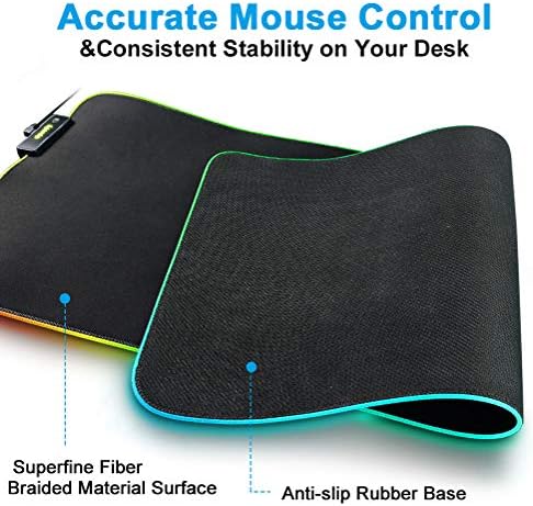 RGB LED Backlit: The RGB mouse mat has a real RGB backlit impact, there are 10 lighting modes, creates a cool gaming setting, excellent for computer gaming.