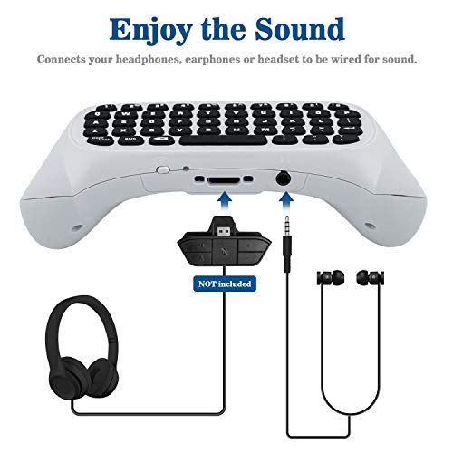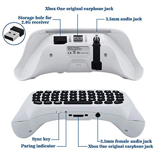 Mcbazel Mini Sport Keyboard 2.4G Receiver Wi-fi Chatpad Message with 3.5MM Audio Jack for Xbox One S/ Xbox Sequence X/ Xbox Sequence S – White