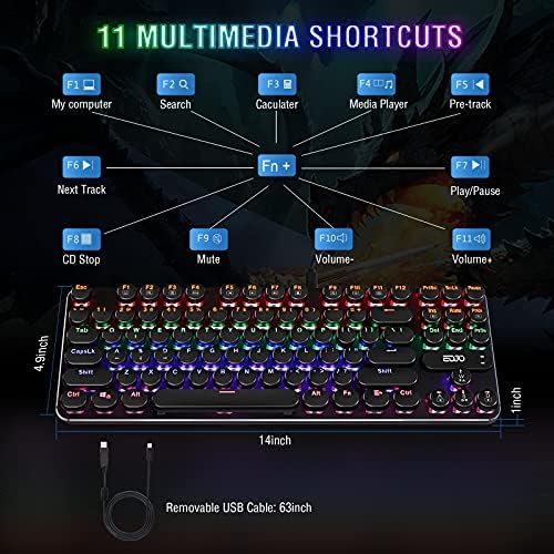 【87 keys Full Anti ghosting】This gaming mechanical keyboard Anti ghosting all 87 keys are battle free n key rollover, simply determine your key combos within the sport.11 multimedia keyboard keys combos make extra environment friendly throughout typing.