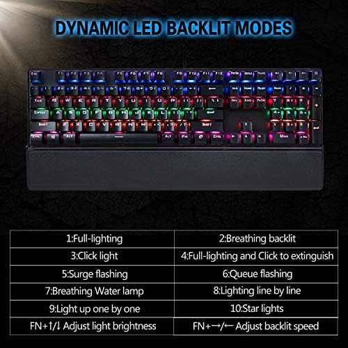 【Dynamic LED Backlit Keyboard and Mouse】Multicolor LED backlit mechanical gaming keyboard, 14 backlight modes. Every key lighting on the keyboard could be custom-made simply with out putting in software program(FN+6~10). 5 ranges of brightness/pace. FN+”↑/↓”:Improve/Lower brightness. FN+“←/→”: modify the backlit price. FN + ESC Flip off the backlit.