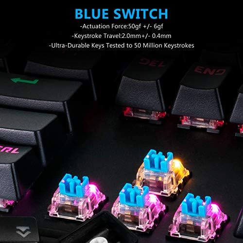 【Removable Wrist Relaxation & Ergonomic Design】Removable wrist mechanical keyboard reduces fatigue even when gaming or typing for a very long time. Double injection molded ABS keycap design for enhanced sturdiness and splash resistance,laser engraved characters,the font on keycaps won’t ever be wipe away and non-slip design.