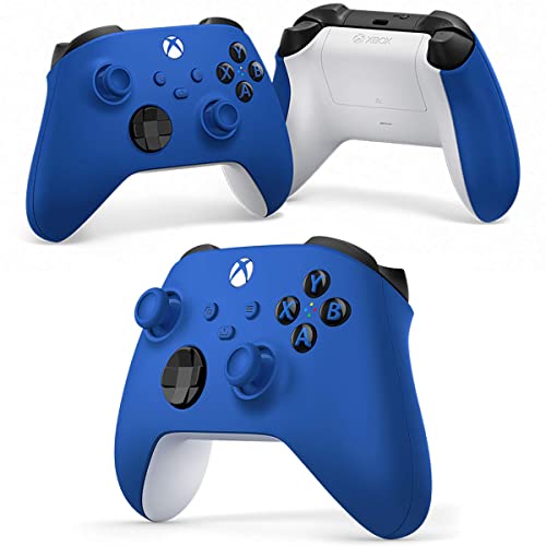 Microsoft Xbox Controller (Shock Blue) for Sequence X, Sequence S, Xbox One, Bundled with 2 Over-ear Gaming Headsets with Mic, Twin Port Charging Dock, Xbox Controller Pores and skin Voucher & PremGear Material