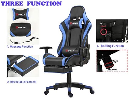 Morfan Gaming Chair New Dimension with Footrest Therapeutic massage and Rocking Perform Ergonomic Design Pc Workplace Chair Enjoyable Lunch Break (Blue)