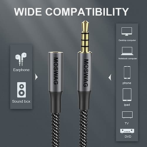 MOWSAG TRRS 4-Pole Headphone Extension Cable,3.5mm Male to Feminine Stereo Audio Cable Lossless Audio Sound Premium Audio Wire Extension Cable Gold Plated Jack & Robust Nylon Braided