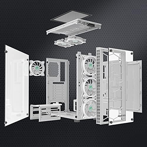 MUSETEX 6pcs 120mm ARGB Fans and USB 3.0 ATX Mid-Tower PC Gaming Cases Computer Cases, 2 Tempered Glass Panels, White Mid Tower Computer Chassis(G05MS6-BB)