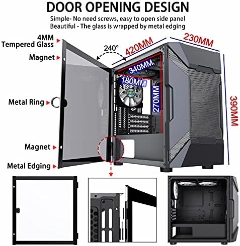 【More Space】MUSETEX MK7 series has 4MM Tempered Door Opening Design and Mesh Front Panel,make it easy and free to disassemble and install computer accessories, and allow maximum airflow to provide cooling for your power supply. The internal space is wide and easy to install 3 x 2.5″ SSD ;2 x 3.5″ HDD;Micro ATX/ITX motherboard; 120mm/240mm/280mm water cooling; maximum length 340mm GPU(installing vertically or horizontally); maximum length 180mm CPU air cooling; maximum length 200mm PSU.