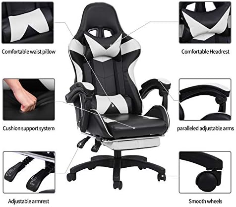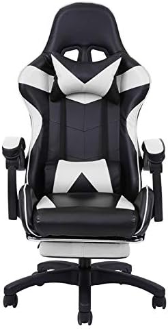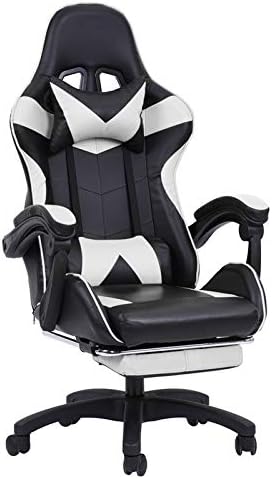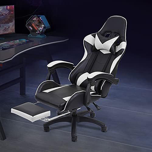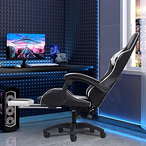 N/AB Gaming Chair with Footrest Adjustable Backrest Reclining Leather-based Workplace Chair (White-6)