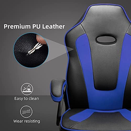Ninecer Ergonomic Gaming Chair Low-cost, Racing Type Excessive Again Workplace Chair Laptop Chair, PU Materials with Padded Armrests and Peak Adjustment Video Recreation Chair (Blue)…