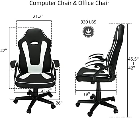 Ninecer Office Desk Chairs, Gaming Chair Office Chairs Clearance, Computer Chair with Padded Armrests and Height Adjustment Video Game Chairs for Teens (White)…