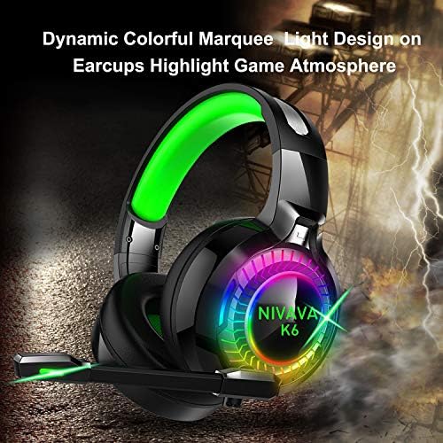 Nivava Gaming Headset for PS4, PC Headphones with Microphone LED Gentle Mic for Nintendo Swap PS5 Ps Laptop, K6(Inexperienced)