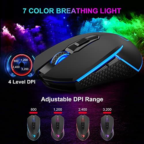 NPET S21 Wi-fi Gaming Keyboard and Mouse Combo, LED Backlit Quiet Ergonomic Mechanical Feeling Keyboard, Gaming Mouse 3200DPI, for Desktop, Pc