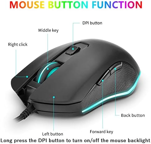 ✅ 【KEYBOARD AND MOUSE COMPATIBILITY】Appropriate for pocket book computer systems and PC pc video games. No driver, USB wired connection, plug and play, absolutely appropriate: Win10/8/7/Vista/ME/Mac/Linux/IBM. If you happen to encounter any issues throughout use, please be happy to contact us.(Lengthy press the DPI button to activate/off the mouse backlight)