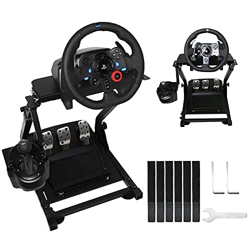 【Peak & Angle Adjustable】- Racing Wheel Stand helps left and proper gear switching. Peak adjustment of wheel stand: 23.6″ as much as 30.3″. which is ergonomically designed to make the driving force extra handy and cozy.