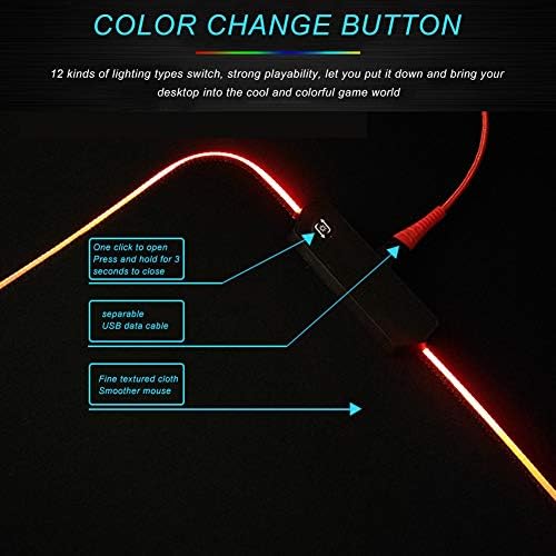 EASY TO USE: The gaming mouse pad is powered by USB. Plug and play, no driver wanted with PC or laptop computer. One-touch management designed to modify the sunshine colours and switch off, which is so handy to make use of.