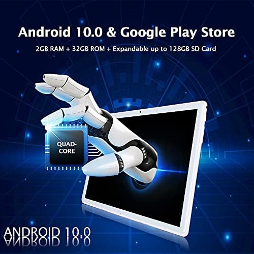 Pill 10.1 Inch 10.0 Android Pill with Twin SIM Card Slot 2GB+32GB, Quad-Core, IPS HD Show, 128GB Develop Storage, 6000mAh Touchscreen Tablets, 2.4G Wi-Fi, Bluetooth, GPS, Silver
