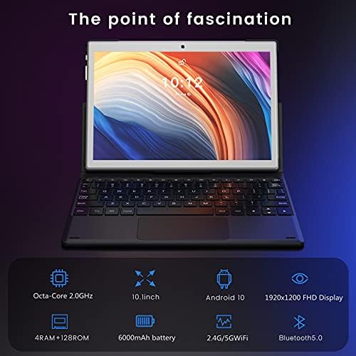 Pill with Keyboard, 10.1″ Octa-Core, Android 10 Pill Google GMS Licensed,4GB RAM, 128GB Storage, 1920×1200 FHD Show, 60Hz Display Fee, 13MP Rear Digicam,5G WiFi, Bluetooth5.0, LMNBBS,Gold