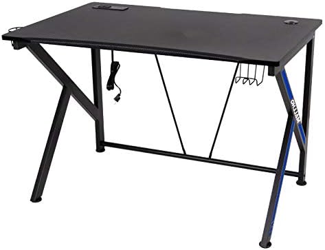 Multi Functions:This PC gaming desk adds a Cable Management Hole, cup and headphone hook , and Built-in Multi-function Socket which contains 2 AC outlets, 2 USB ports providing comfortable gaming and working environment.Modern and fashion designed and considered for your needs,not only a cool gaming desk ,but also a Modern workstation or steady table.
