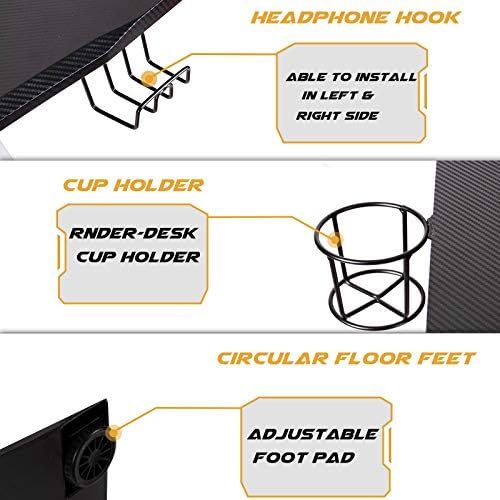 Humanized design:The carbon fibre gaming desktop with adjustable feet is stain- and scratch-resistant, which is WATERPROOF and EASY CLEANING. The large gaming surface is perfect for the pro gamers.The contoured table top allows you to sit close and supports your wrists and forearms. It provides a massive and waterproof desktop for gaming monitors, mouse, keyboards and other gaming gears.So you can focus on your game.