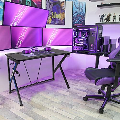 Be the first to review “Polar Aurora K-Shaped Gaming Desk 45.1″ W x 28.6″ D Home Office Computer Table, Black Gamer Workstation with Cup and Headphone Hooks, Cable Management Hole and Built-in Multi-Function Socket(Blue)”