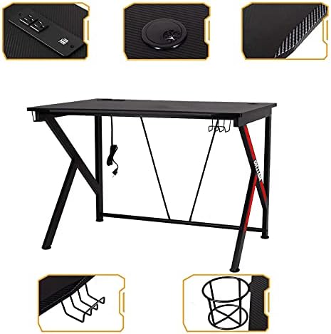 Multi Features:This PC gaming desk provides a Cable Administration Gap, cup and headphone hook , and Constructed-in Multi-function Socket which incorporates 2 AC shops, 2 USB ports offering snug gaming and dealing surroundings.Fashionable and vogue designed and thought of in your wants,not solely a cool gaming desk ,but in addition a Fashionable workstation or regular desk.