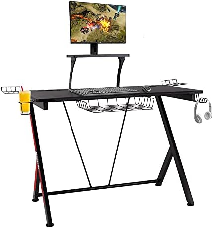 Multi Functions:This PC gaming desk adds a monitor stand, cup and headphone hook, under-desk basket and Cable Management Hole providing comfortable gaming and working environment.Modern and fashion designed and considered for your needs,not only a cool gaming desk ,but also a Modern workstation or steady table.