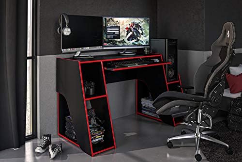 Polifurniture Kyoto Gaming Desk, Black & Red