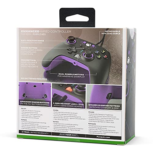 PowerA Enhanced Wired Controller for Xbox Collection X|S – Purple Hex, Gamepad, Wired Video Sport Controller, Gaming Controller, Xbox Collection X|S – Xbox Collection X