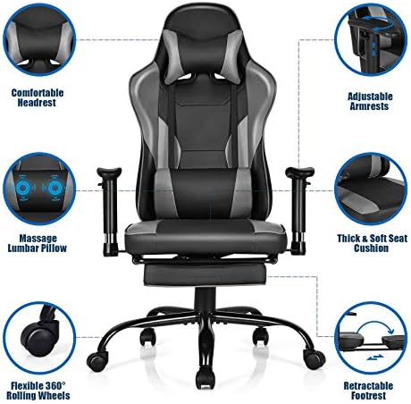 🎮【Adjustable Reclining Chair】Therapeutic massage gaming chair is with 360 diploma swivel rolling easily to to make sure easy motion in all instructions. The reclining backrest might be adjusted from 90° to 135° whereas the peak is changeable inside 4 inches. Which might meet all of your wants for gaming, learning, working or each day leisure