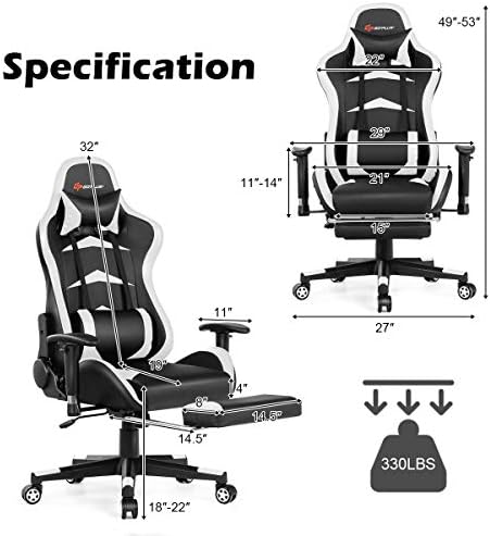 💖【Skilled Gaming Chair】We concentrate on supplying you with the most effective gaming expertise, we’re proper! Chair measurement: 29” x 27” x 49”-53” (L x Wx H), seat space measurement: 21” x 19”(W x D), backrest space measurement: 32” x 22”(L x W), most bearing weight: 330 lbs. 5-point base constructed with heavy responsibility; Easy-rolling casters; Heavy-duty base and nylon smooth-rolling casters for excellent stability and mobility