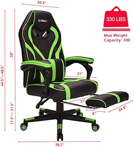 POWERSTONE Therapeutic massage Gaming Chair – Ergonomic Pc Racing Chair with Footrest Video Gaming Desk Chair Excessive-Again Reclining Recreation Chair Swivel Gamer Chair for Adults Boys, Inexperienced