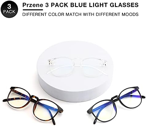 Przene 3 Pack Blue Gentle Blocking Glasses Ladies/Males,Retro Spherical Laptop Glasses Anti Eye Pressure/UV/Glare, Gaming Glasses.