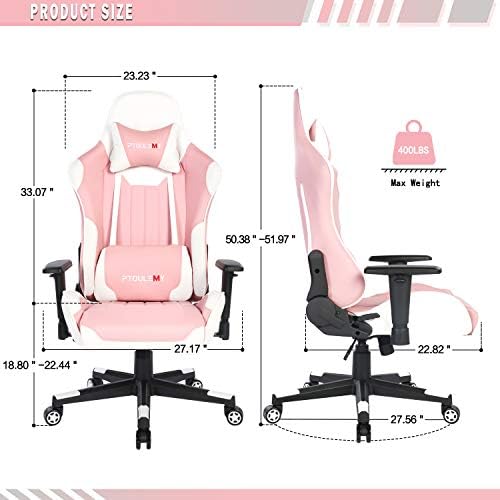 Ptoulemy Therapeutic massage Gaming Chair Huge and Tall Video Sport Chair Heavy Obligation 360 Swivel Ergonomic Laptop Gamer Chair Racing Fashion 90°-180° Adjustable Excessive Again Headrest and Lumbar Help (Pink)